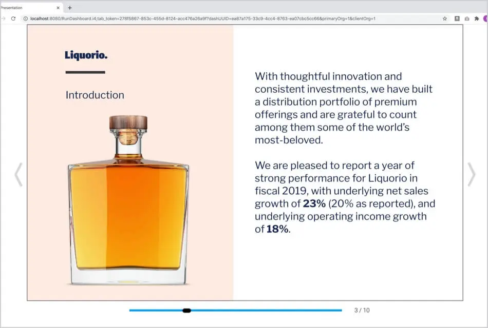 美しいダッシュボードやプレゼンテーションをより詳細に体験し、フルスクリーンモードでツールバー、ヘッダー、フッターなどの気になる部分を自動的に非表示にします。