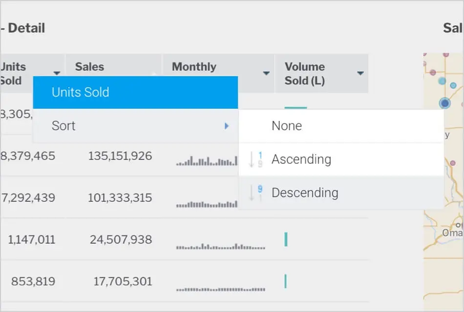 公開されたダッシュボードで、表形式のレポート列を昇順または降順に並べ替えられるようになりました。