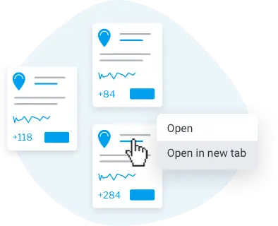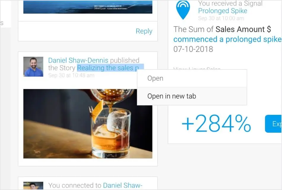 分析コンテンツやリンクを含むタイムラインのイベントカードには、メニューアイコンが表示されるようになりました。このメニューは、同じブラウザタブまたは別のブラウザタブでコンテンツを開くためのオプションを提供します。