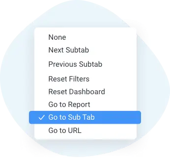 アクションボタンとその他すべてのダッシュボードウィジェットに新しいイベントが導入されました。これらには以下が含まれます。外部ページに移動する「URLに移動」、ダッシュボードやプレゼンテーション内のサブタブやスライドに移動する「サブタブに移動」があります。