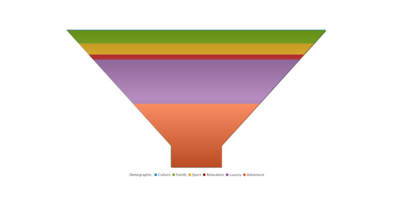 じょうごの幅は各ステップを通過するユーザーの数を表します。これは、連続した段階で構成される線形プロセスを表現し、人々がどこで離脱しているかを一目で把握できます。