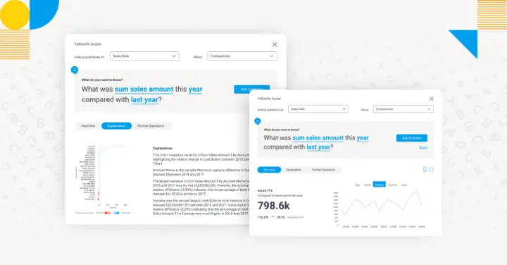 Yellowfinがどのようにして、コンテクスチュアルインサイトや自然言語クエリー (NLQ) といったAI搭載の分析技術をアプリケーションに組み込み、不確実性を行動へと変え、ユーザーが単なる数字ではなく「物語」としてデータを理解できるようにしているのかをご紹介します。
