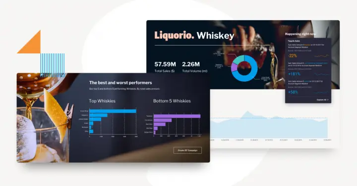 強力なダッシュボードとレポートを作成し、より良い意思決定と自動化を実現。さらにガイド付きNLQによる真のセルフサービスBIを体験できます。