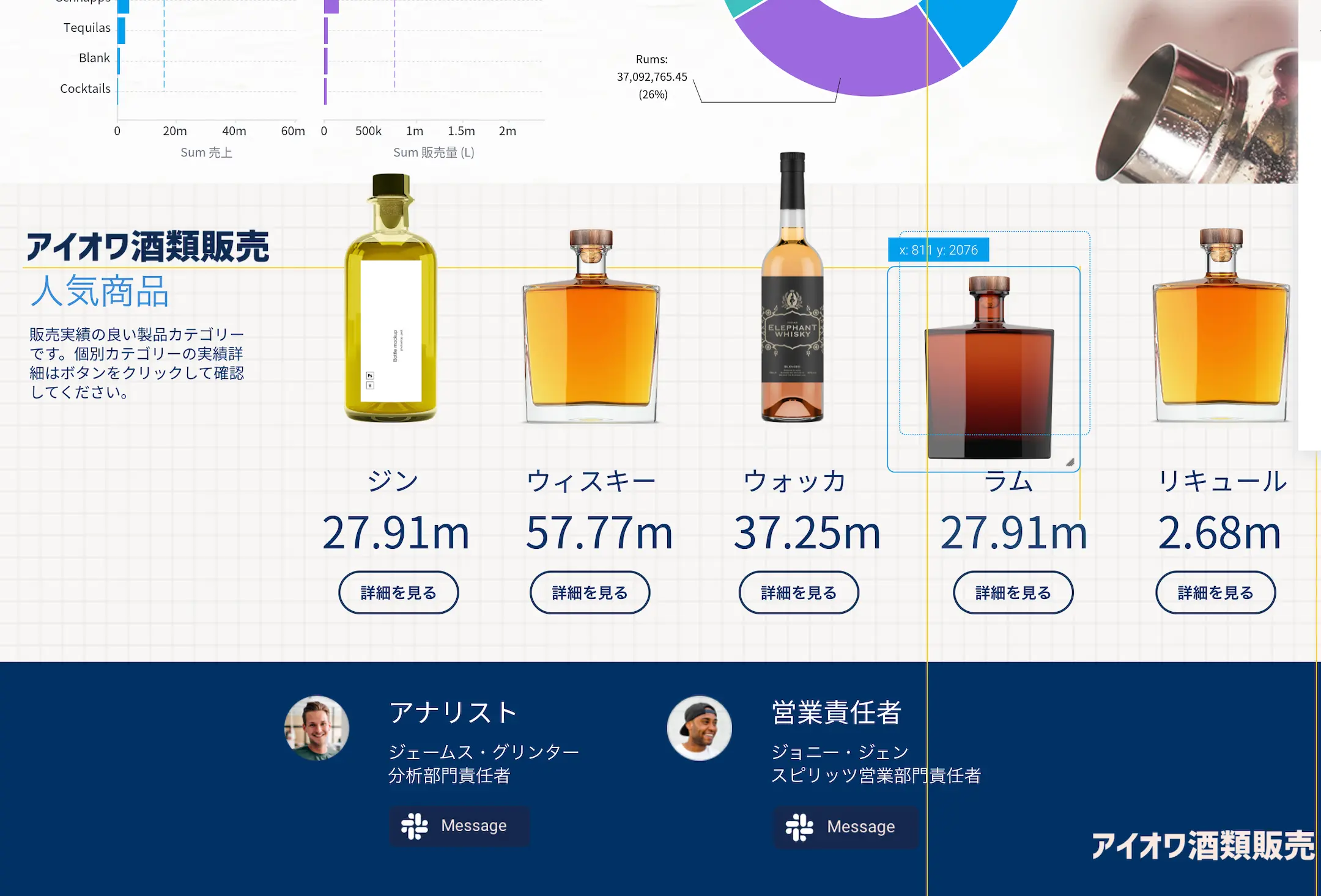 ストーリー – Yellowfin ストーリーは、豊富な知識を持つビジネスユーザーが数字の背後にある完全な文脈を提供することを可能にします。pudding.coolやmedium.comといった人気のストーリーテリングサイトに倣い、レポートやビジュアライゼーションをテキストと一緒に組み込み、数字の背後にあるストーリーを提供することができます。ストーリーは、イメージやビデオだけでなく、Power BIやTableauなど他のBIツールのレポートとも組み合わせることができます。ストーリーは、データの塊や複雑なビジュアライゼーションの解釈が困難な情報消費者に最適で、専門家による段階的な説明を受けることができます。
