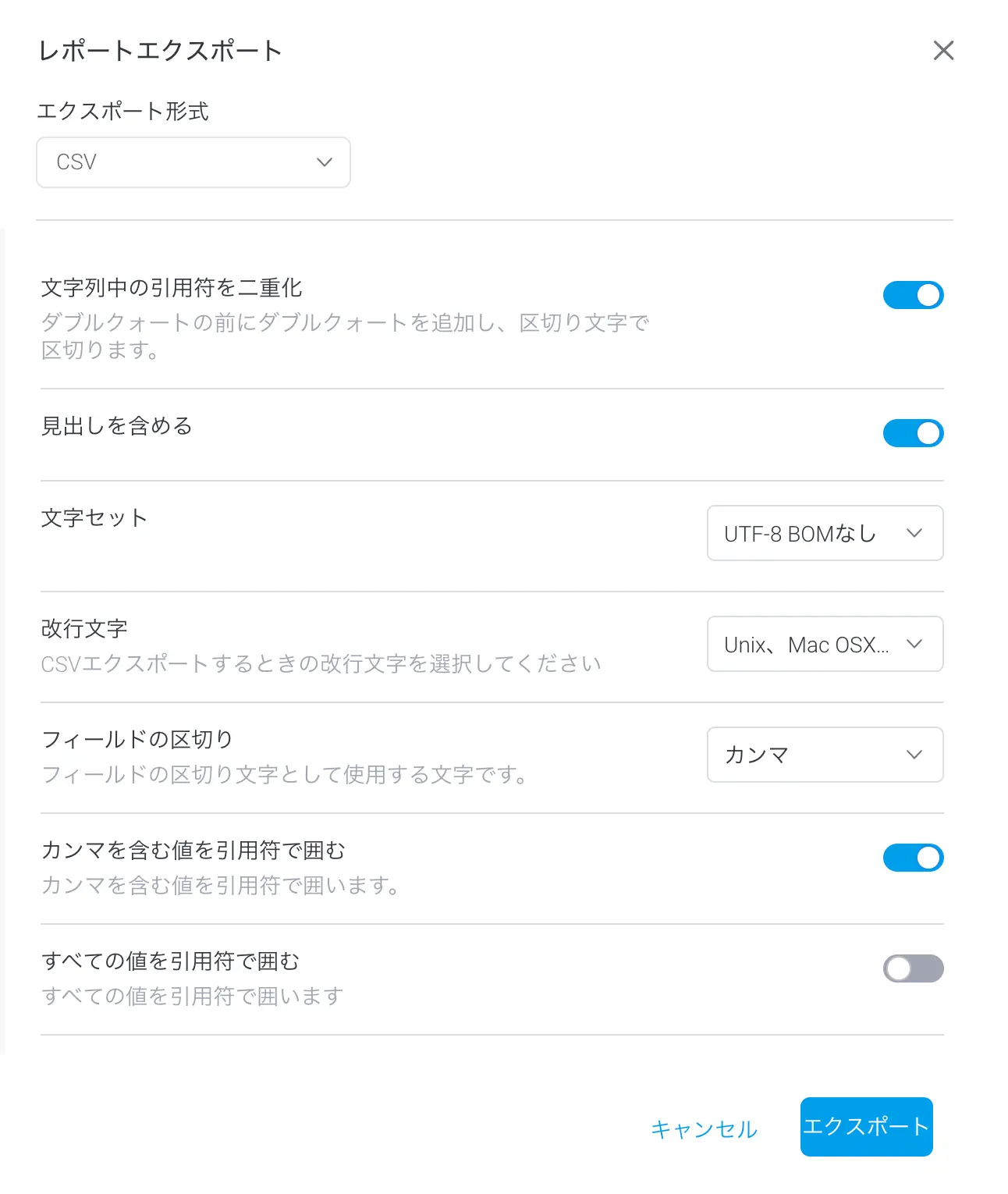 一般的なプロセスはレポートのエクスポートと似ていますが、若干の違いがあります。