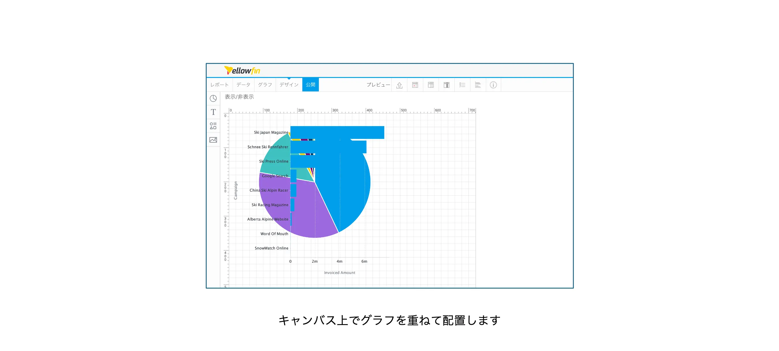 グラフが作成できたら、レポートのキャンバスでそれぞれのグラフを重ねて配置します。今回は、条件付き書式によってどちらか片方のグラフだけを表示するように設定するので、グラフが片方だけ表示されたときのことを考えて配置場所を調整します。